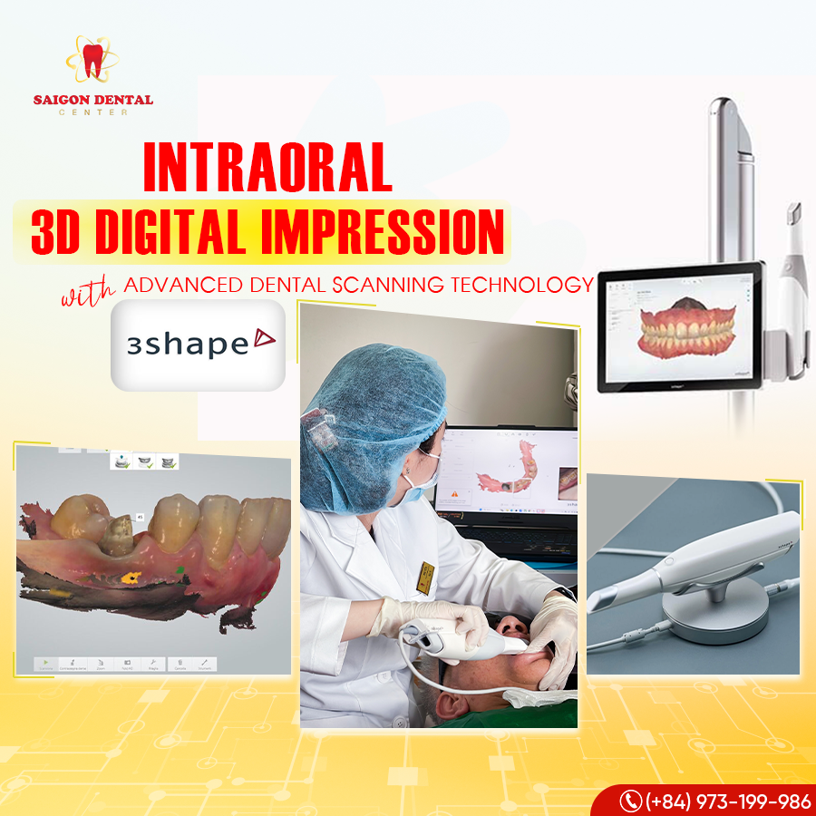 Saigon Center Dental Clinic applies 3D Digital Scan technology with the TRIOS scanner (3Shape, Denmark), delivering fast and precise impressions without messy molds.