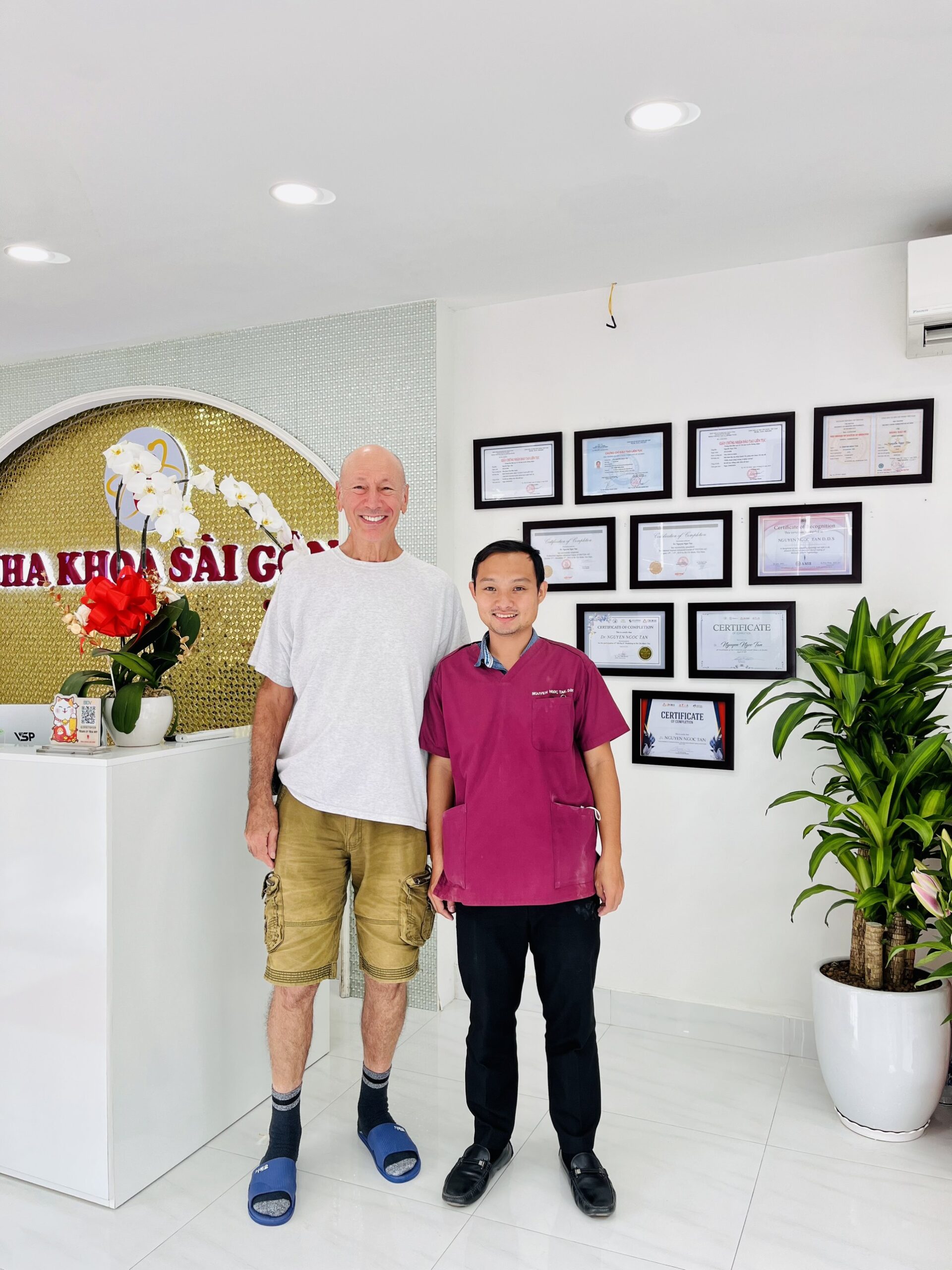 Biz, Sağlık Bakanlığı tarafından 09542/HCM-GPHĐ lisans numarasıyla faaliyet izni verilen çene-yüz cerrahisi konusunda uzmanlaşmış bir diş kliniğiyiz. Kliniğimiz 378B Vo Van Tan, Ward 5, District 3, Ho Chi Minh City, Vietnam adresinde bulunmaktadır. Hem yerel hem de yabancı müşterilerimiz arasında güvenilir bir marka olmayı kısa sürede başardık.